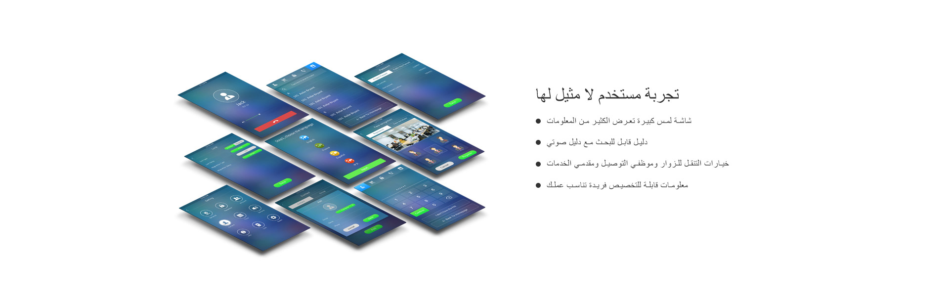 عرض واجهة التحكم الخاصة بجهاز اكوفوكس التي توضح كيفية استخدام النظام، مع تضمين الخيارات مثل قراءة الوجه، التفاعل مع الصورة المعروضة، والتواصل مع الزوار عبر شاشة اللمس. تصميم الواجهة يركز على السهولة والكفاءة.