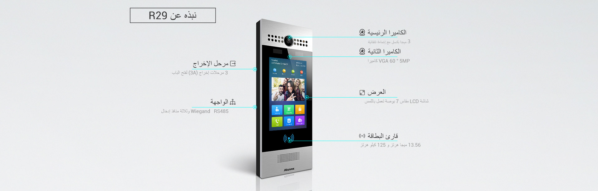 اكوفوكس جرس باب كاميرا R29S جهاز انتركوم من متجر أحدث الحلول للأنظمة الأمنية يتميز بكاميرا بدقة 2 ميجابكسل، شاشة 7 بوصة، زاوية رؤية 105 درجة، مع معايير الأمان IP65 لمزيد من الحماية والوضوح.